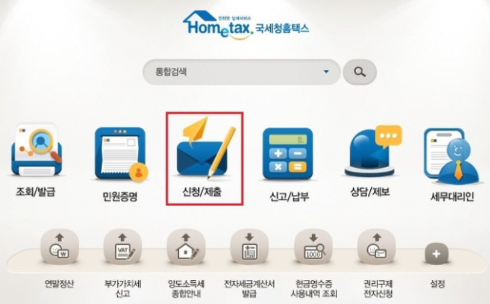그래서 맨 처음 포털사이트에서 홈택스 검색 후 접속하여 신청 제출을 선택합니다.