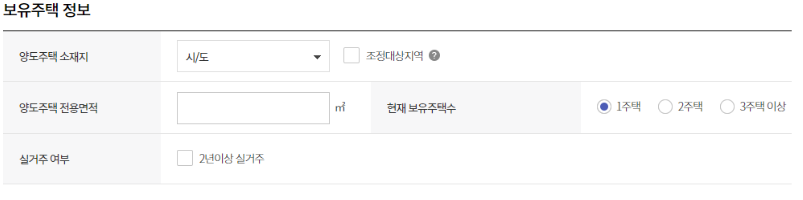 현재 보유주택 전용면적과 보유주택수를 입력해주는데 여기서 주의할 점은 1가구2주택이신 분들은 보유주택수를 2개라고 입력해주셔야 한다는 것입니다.