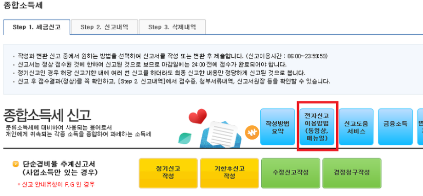 전자신고방법으로 들어가주면 되는데 신고방법 내용의 설명을 들어야 합니다.