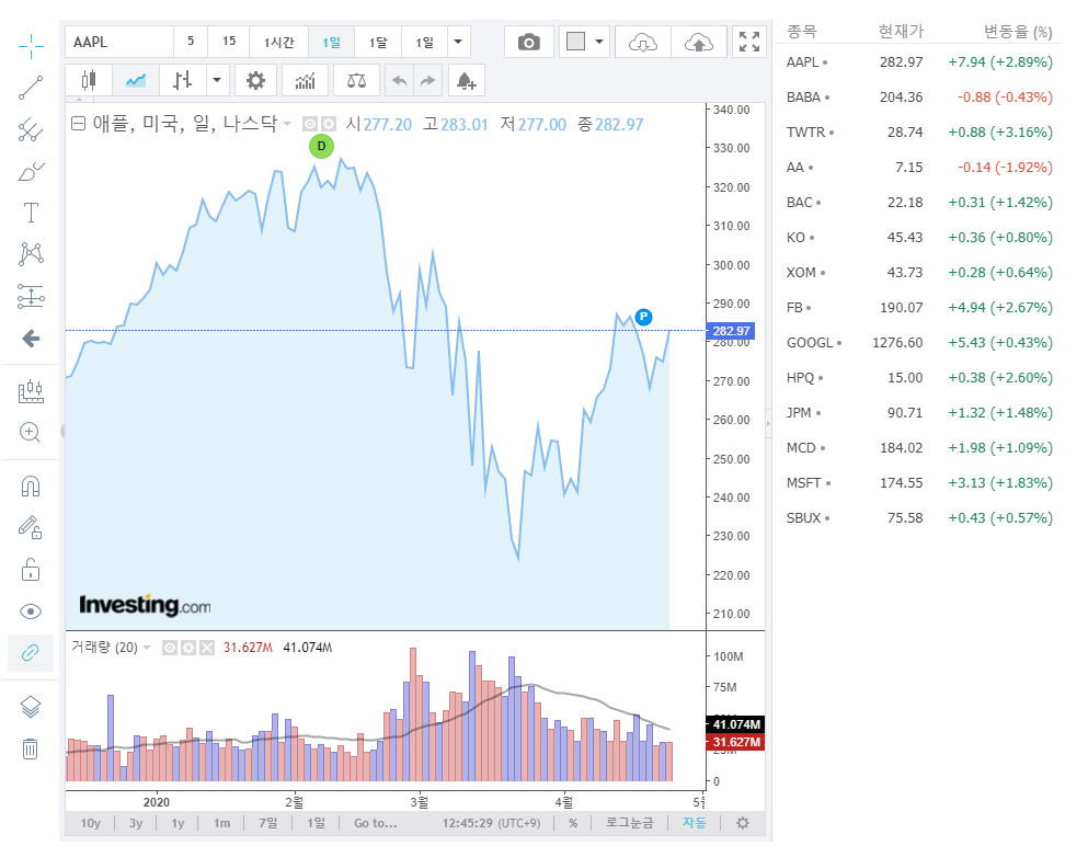 나만의 차트 설정을 할 수도 있으며 미국 나스닥 주식 등 다양한 주식을 현재 시점으로 확인할 수가 있습니다.