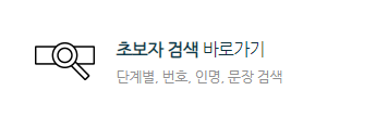 초보자 검색으로도 검색이 가능한데요. 단계별, 번호, 인명, 문장 등으로 나눠서 검색해볼 수 있습니다.