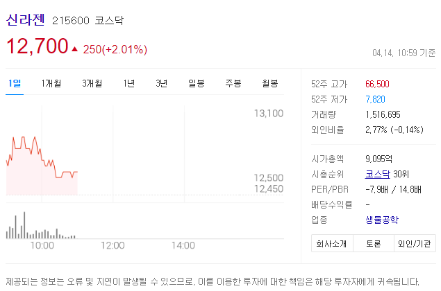 신라젠은 며칠 전 1만 2250원에 장이 마감되었는데 이것은 전날 거래일보다 6.15% 내린 가격입니다. 미공개 정보를 이용한 주식거래 의혹 때문에 검찰이 신라젠 전 대표들에게 수사를 본격화한다는 기사가 뜬 바 있기 때문입니다.