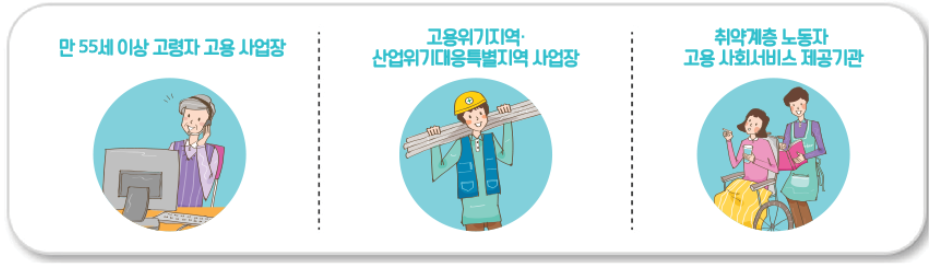 공동주택 경비 또는 청소원 고용 사업주는 30인 이상도 지원합니다. 업종 특성 및 인건비 부담 주체(입주민) 등을 감안하여 공동주택(아파트, 연립주택, 다세대주택) 경비・청소원은 30인 이상인 경우에도 지원이 됩니다.