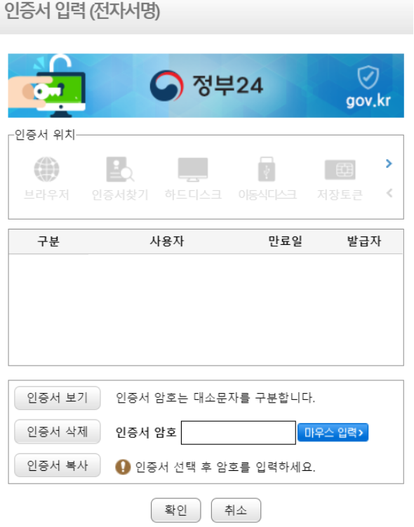 브라우저에 인증서가 없으면 아래 3가지 중 택1해 등록하면 됩니다.