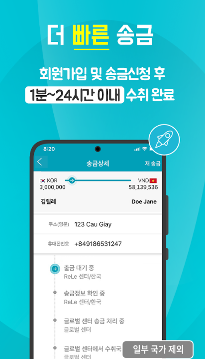 출국 후 FAX나 E-MAIL을 보내는 방식으로 편리하게 해외송금이 가능합니다.