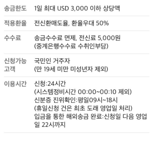 환율우대 : 주요통화(USD, JPY, EUR) 50%, 기타통화 30%우대