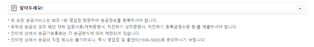 다만 위 서비스를 이용하려면 최초 1회 영업점 방문하여 송금정보를 등록하셔야 합니다.