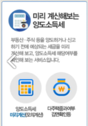 다음 화면에서 양도세 미리계산을 통해 양도세 자동계산이 가능합니다.