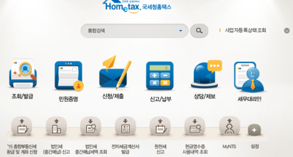 다음은 홈택스로 알아보는 방법입니다. 홈택스 홈페이지에 들어가 맨 첫 화면 조회발급을 누릅니다.