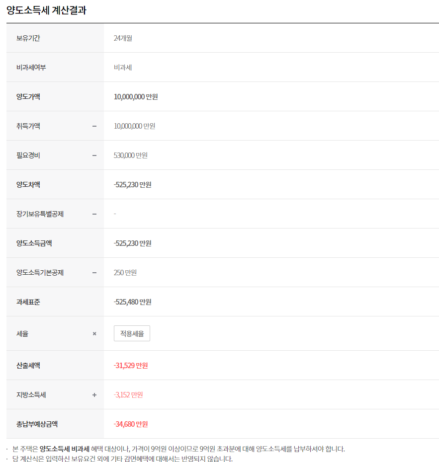 세율도 과세표준에 따라 적용되면 최종 납부 양도세 계산이 완료됩니다. 아래 유의사항도 읽어주시기 바랍니다.