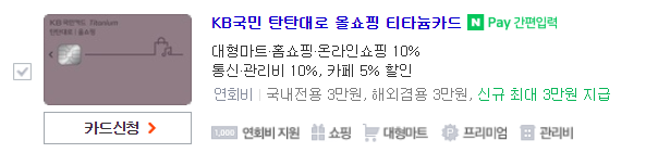 공과금 자동이체 할인카드 2. KB 국민카드 탄탄대로 티타늄 카드