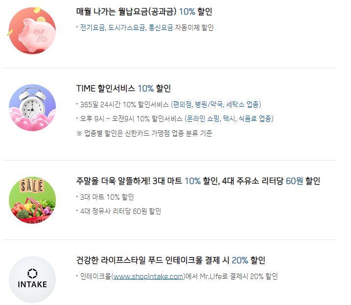 공과금 자동이체 할인카드 3. 신한카드 MR. LIFE