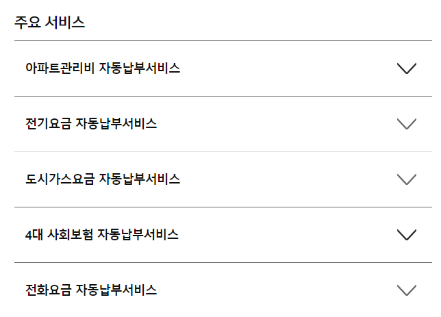 매월 나가는 공과금을 10% 할인해주며 여기에는 전기요금, 도시가스요금, 통신요금 자동이체 할인이 됩니다.