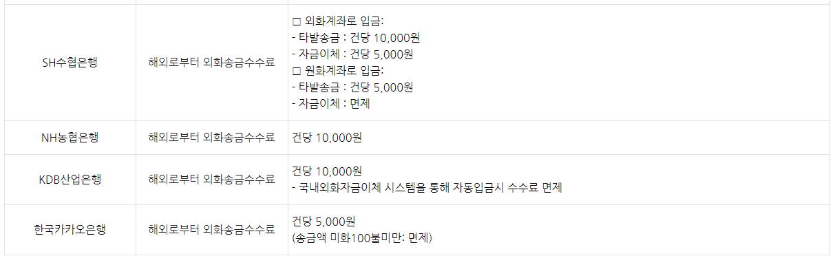 해외에서 송금받을 때 수수료 면제. 단 300불 한도 내에서.