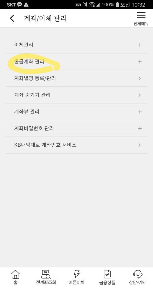 먼저 앱-계좌 이체관리로 들어갑니다.