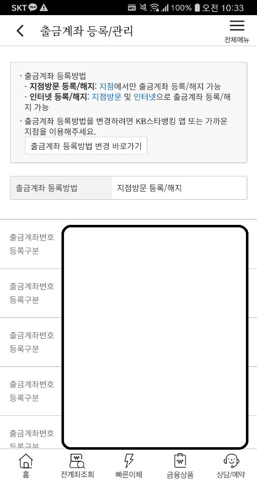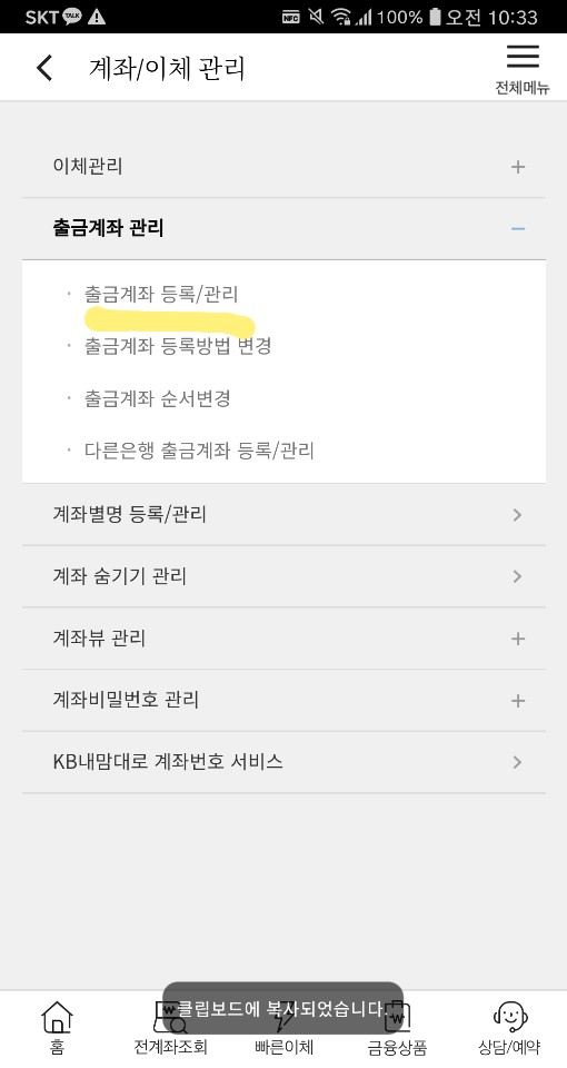 출금계좌 등록/관리 누릅니다.