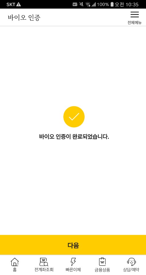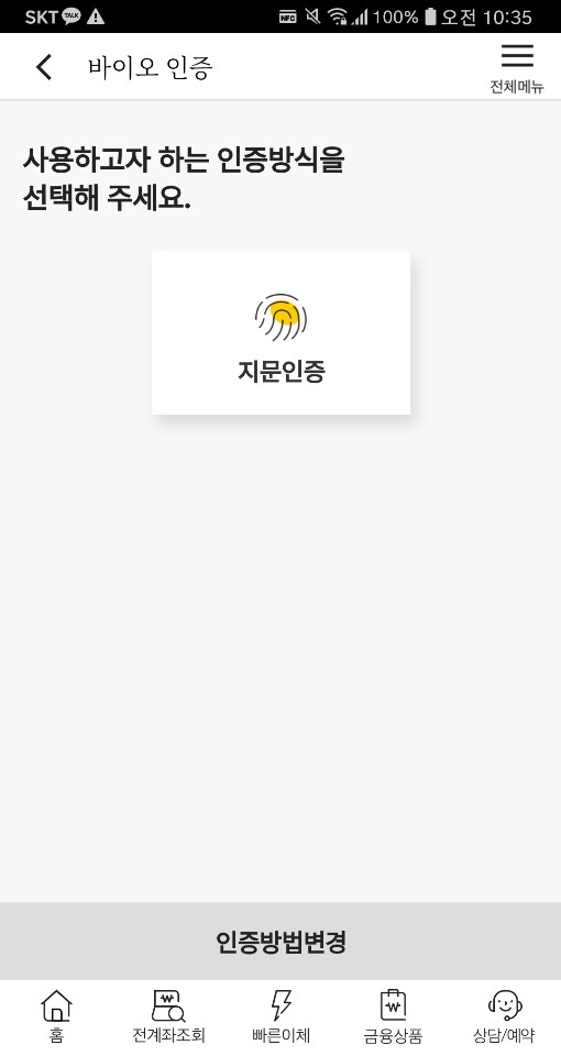 쉬운 지문인증으로 외화통장 출금 등록을 위한 다음 단계를 진행합니다.
