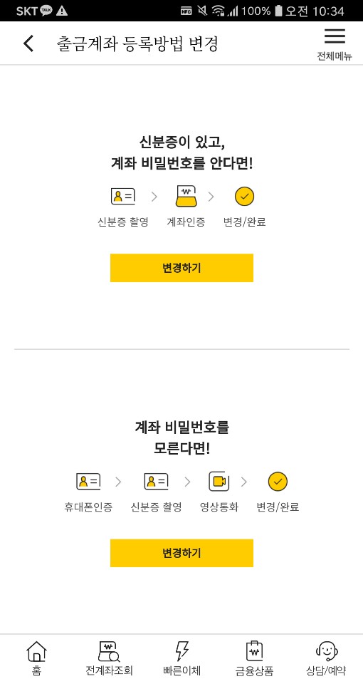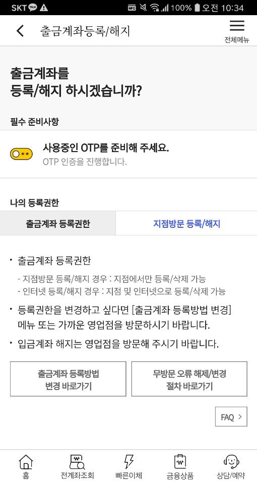 출금계좌 등록방법을 변경해줍니다.