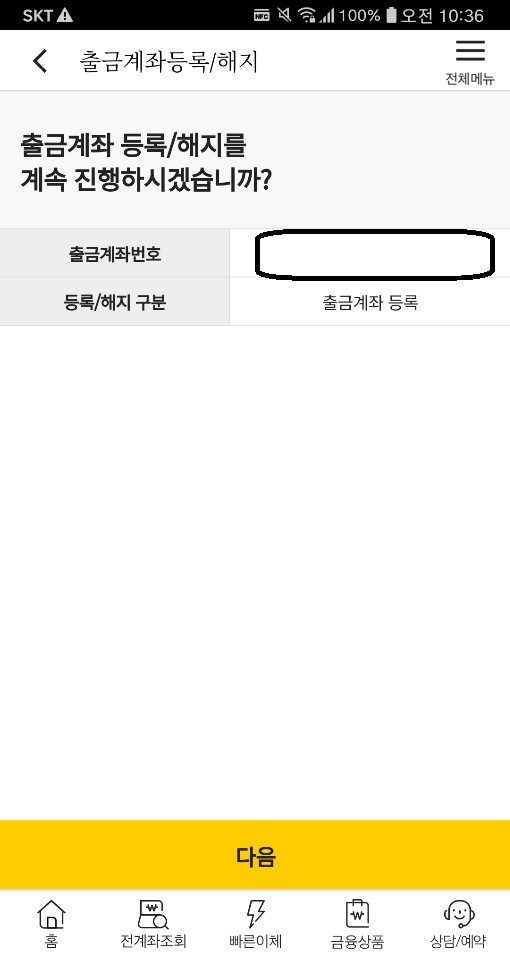 특정 계좌번호를 눌러준 뒤 출금계좌 등록을 누릅니다.