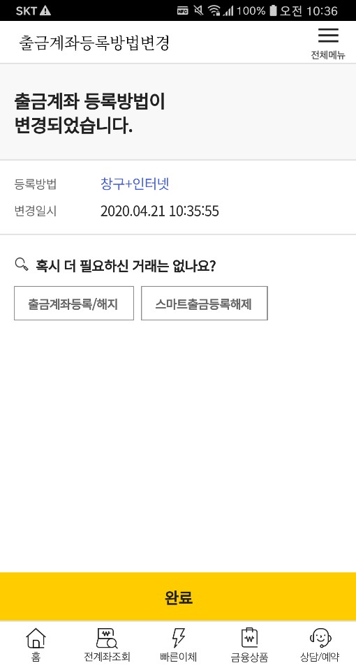 이제 외화통장 출금 등록이 거의 끝났습니다.