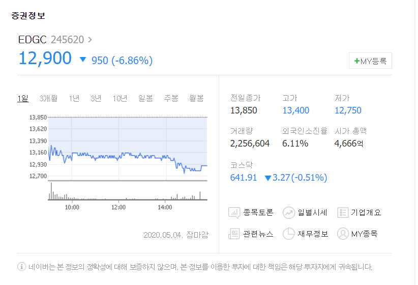 EDGC 같은 경우는 4월경 주요 관리직들이 전량 매도할 정도로 고점에 이르렀던 바 있습니다. 다만 변동성이 굉장히 컸던 회사입니다.