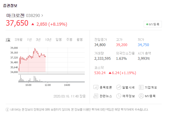코로나 백신 관련주 7. 마크로젠