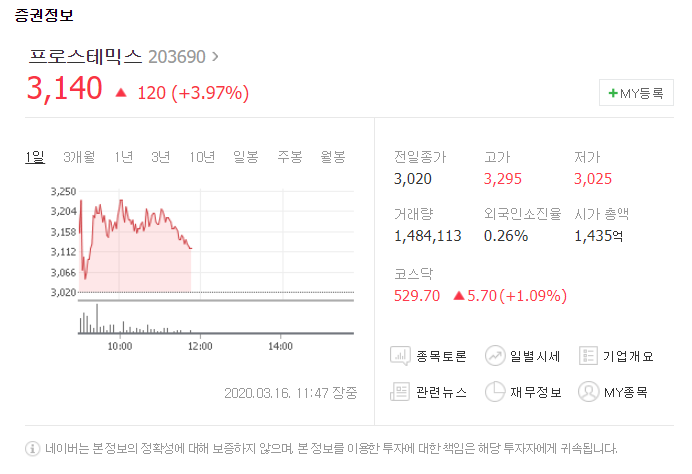 코로나 백신 관련주 2. 프로스테믹스