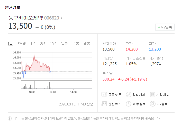 코로나 백신 관련주 6. 동구바이오제약