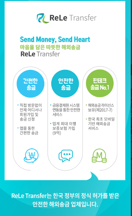 추가로 핀테크 방법으로도 진행할 수 있습니다. 핀테크 해외송금을 제공하는 렐레 트랜스퍼(ReLe Transfer)등이 있는데요. 송금 서비스 국가는 22개 국가입니다. 다양한 방법에 대해 알아보겠습니다.